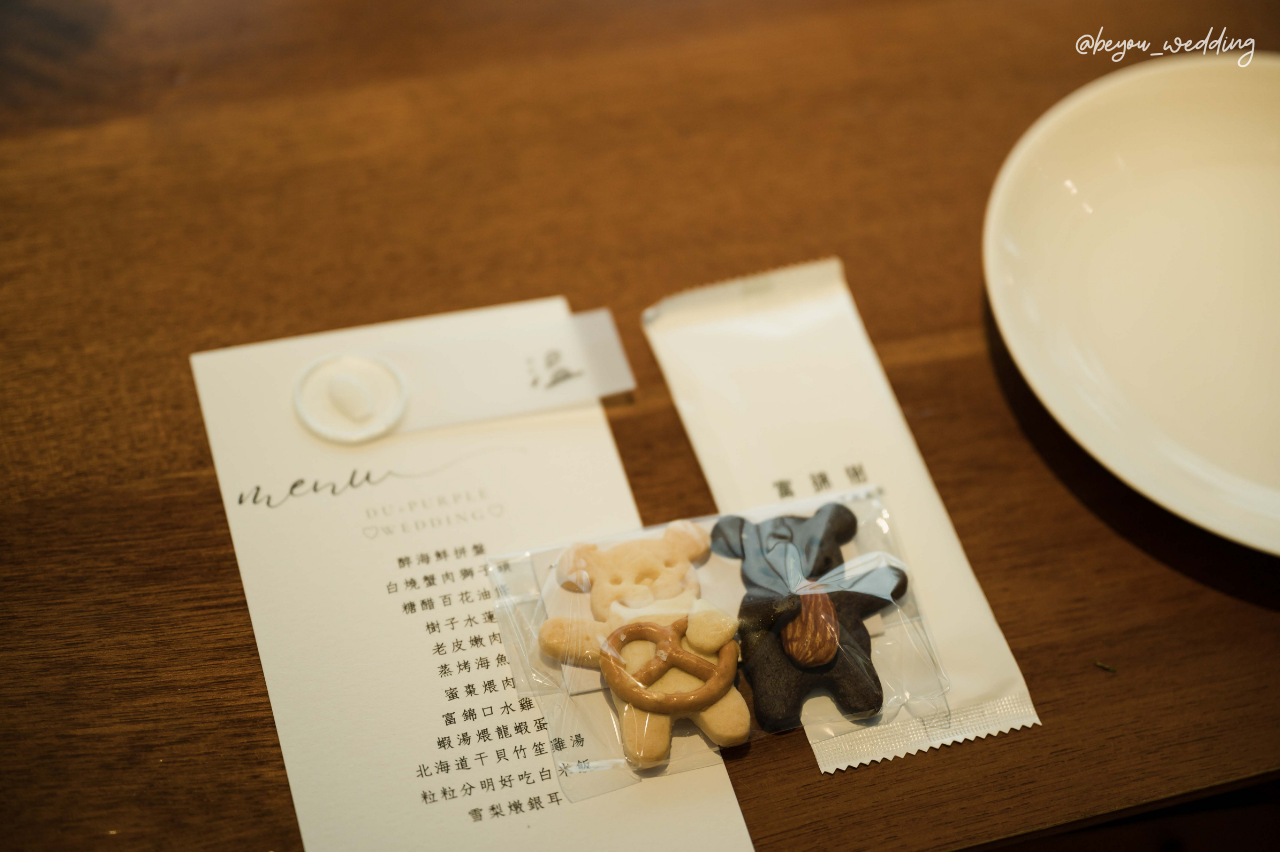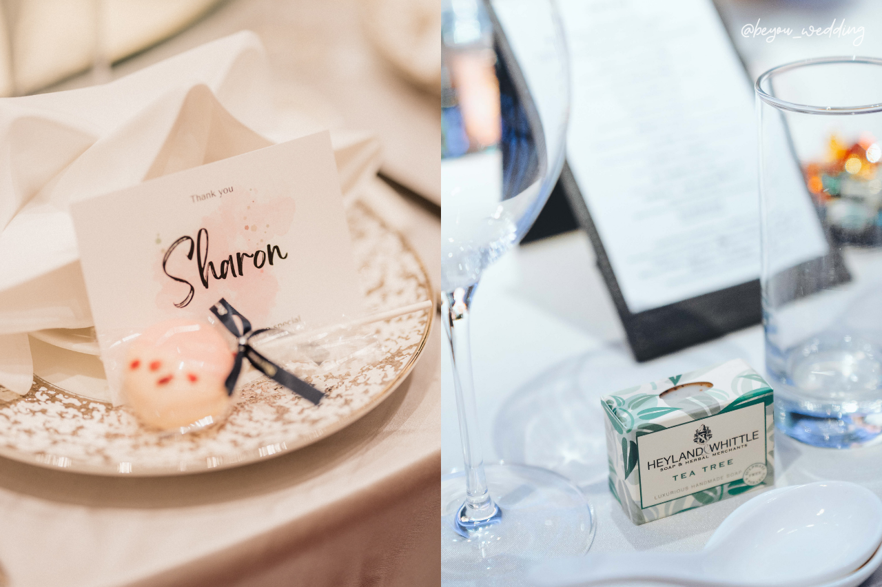 放在賓客桌位上,每人一個的禮物。讓賓客一到場就感受到新人的用心,是百忙之中無法抽時間招呼最好的取代方式。